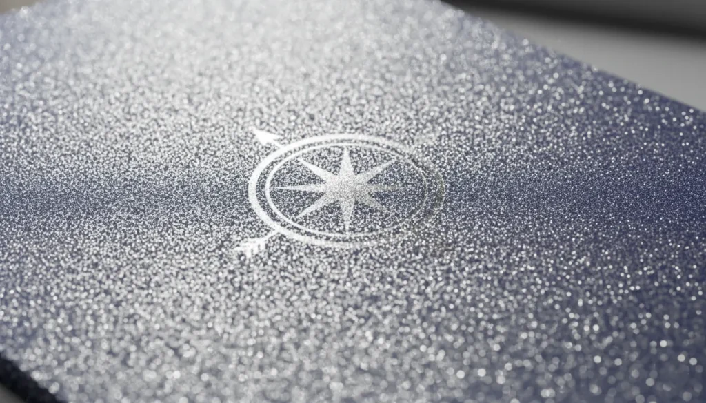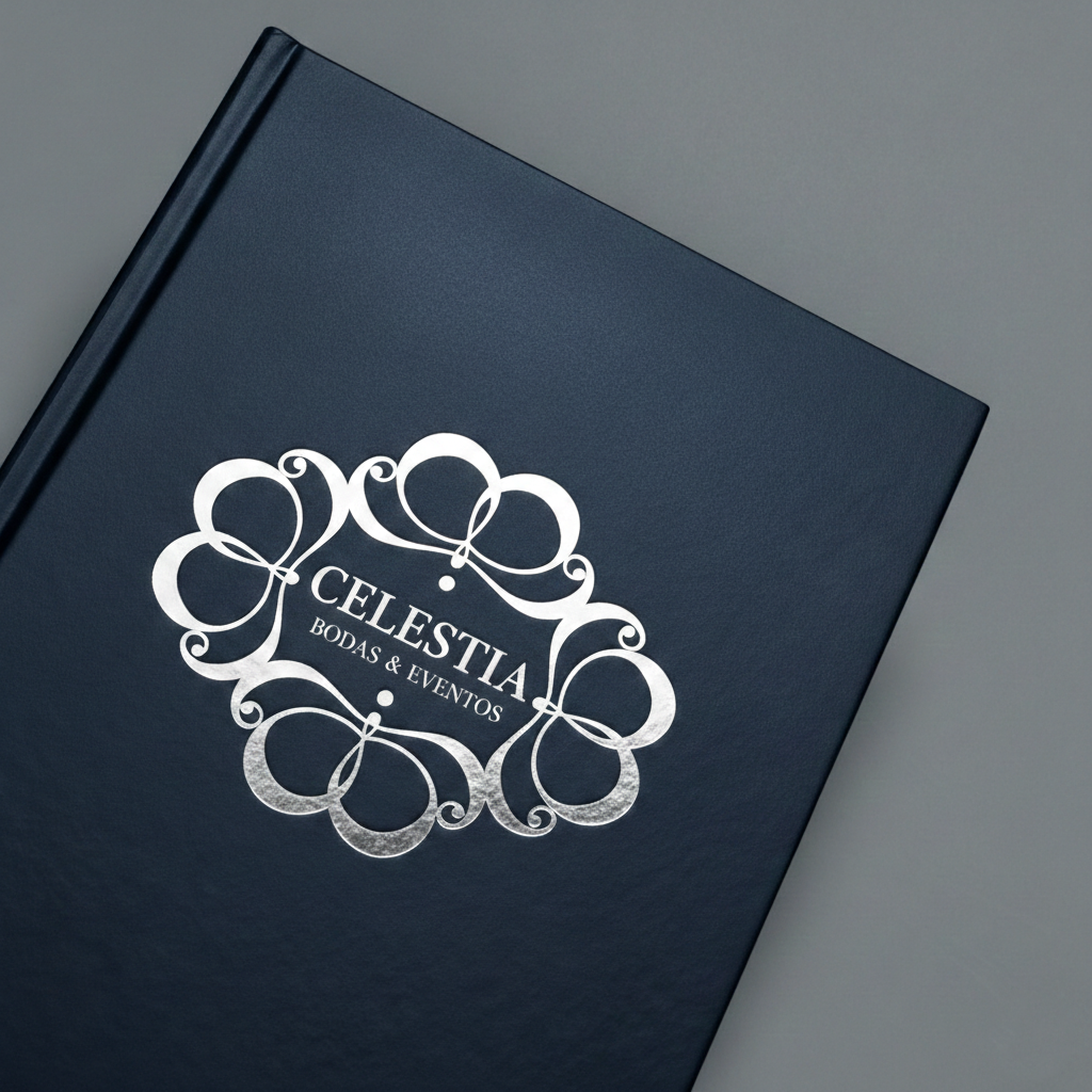 Brillo metálico para detalles que destacan (logo, sello, nombre).